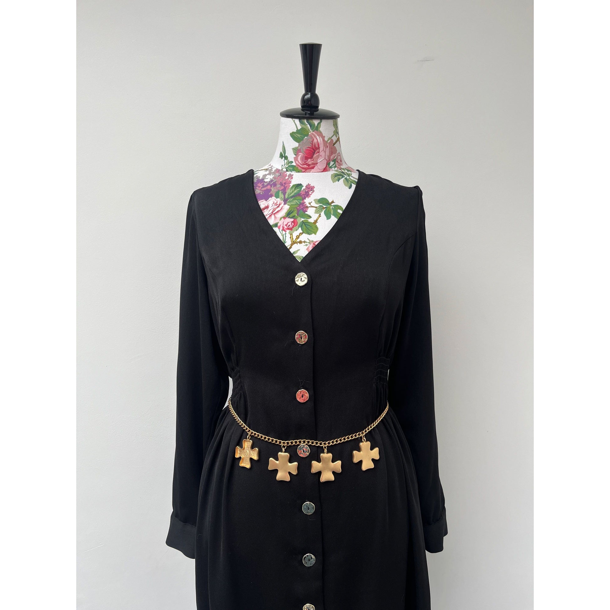 Kenneth Jay Lane Gold Plated Cross Charm Chain Belt.