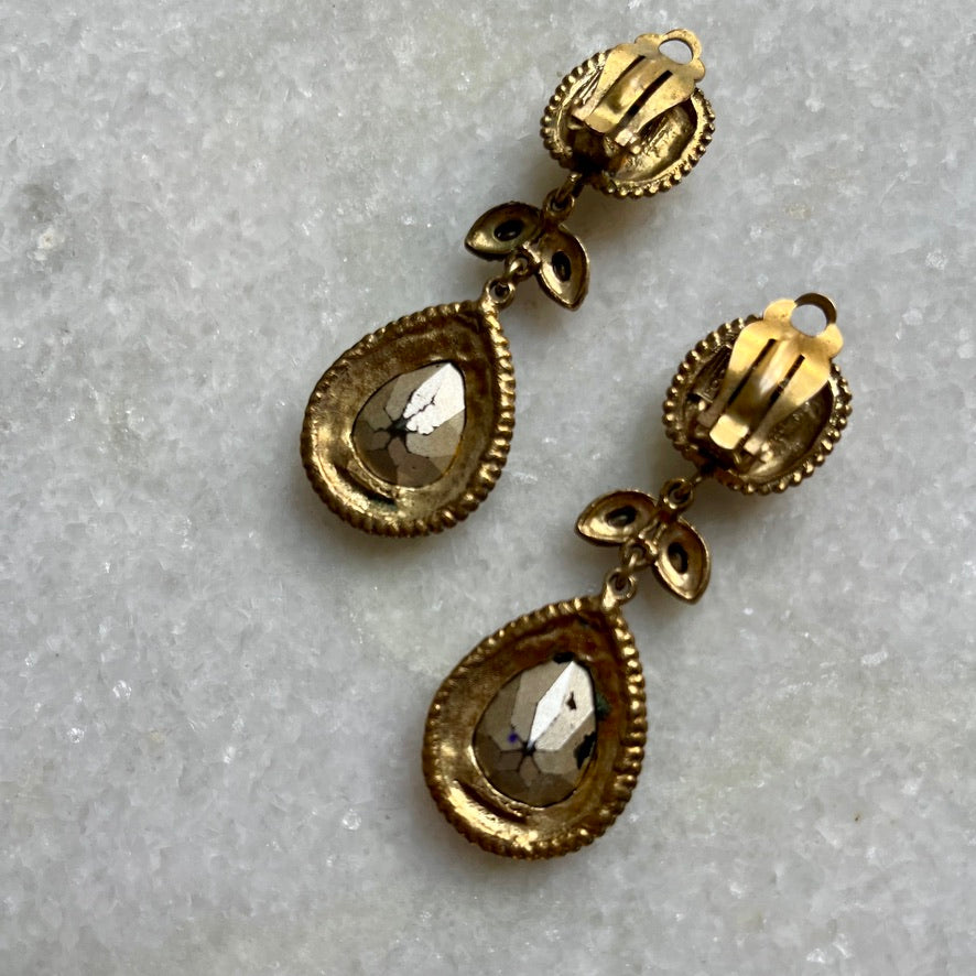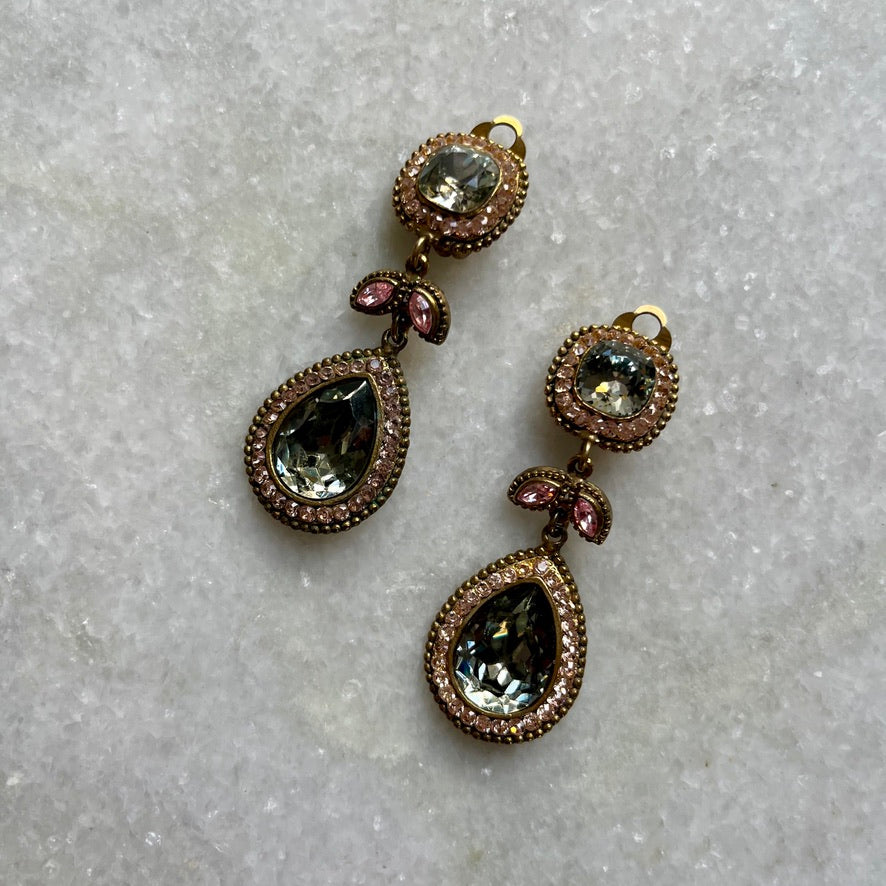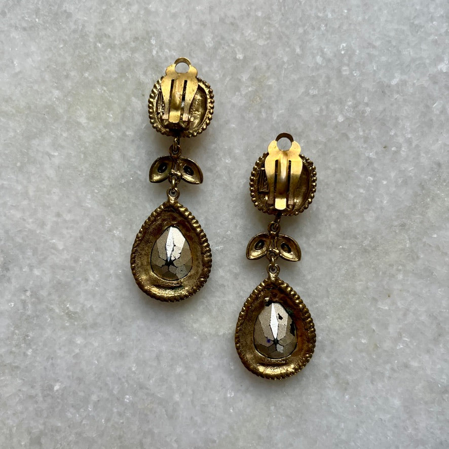 Poggi Paris Glass Rhinestone Tear Drop Clip On Earrings
