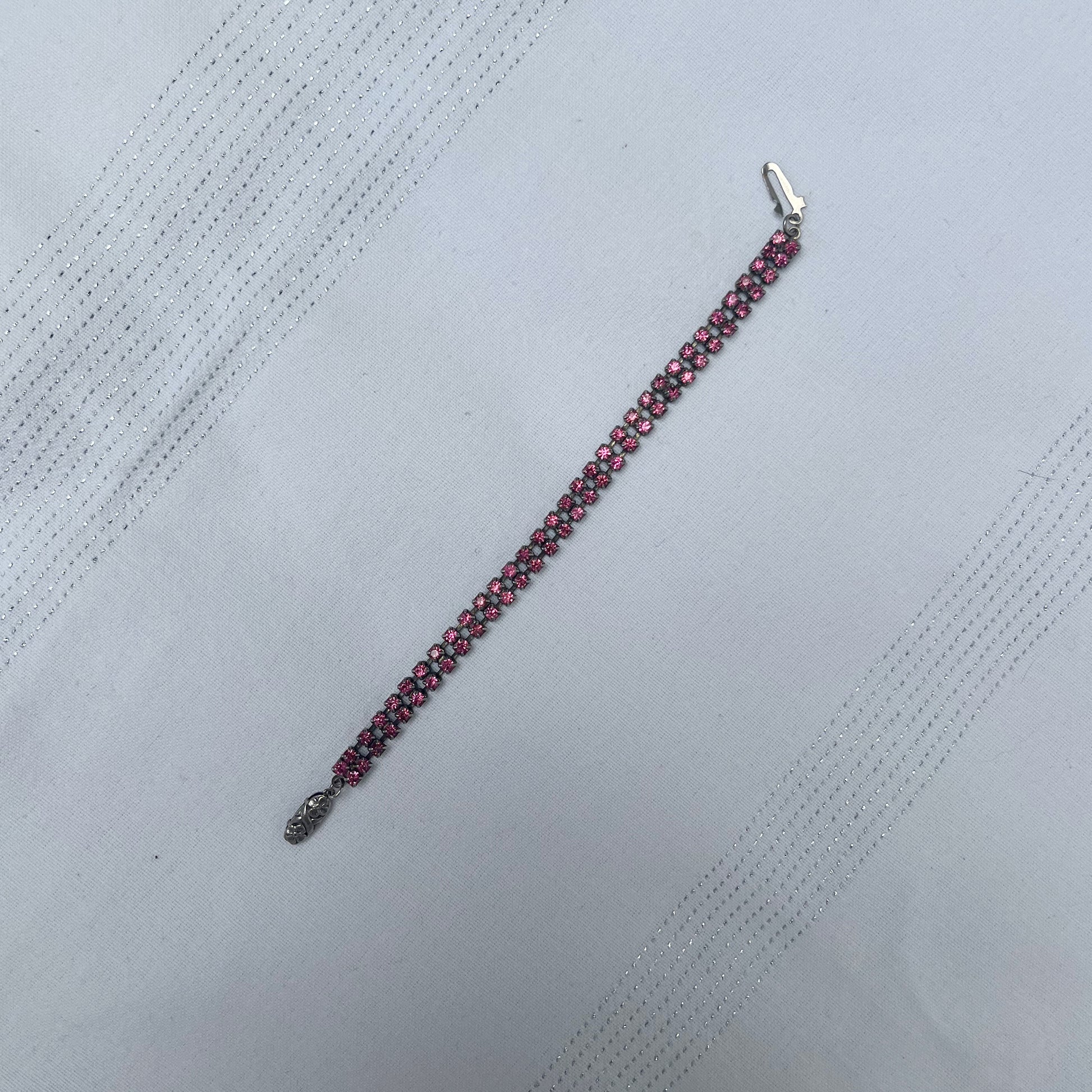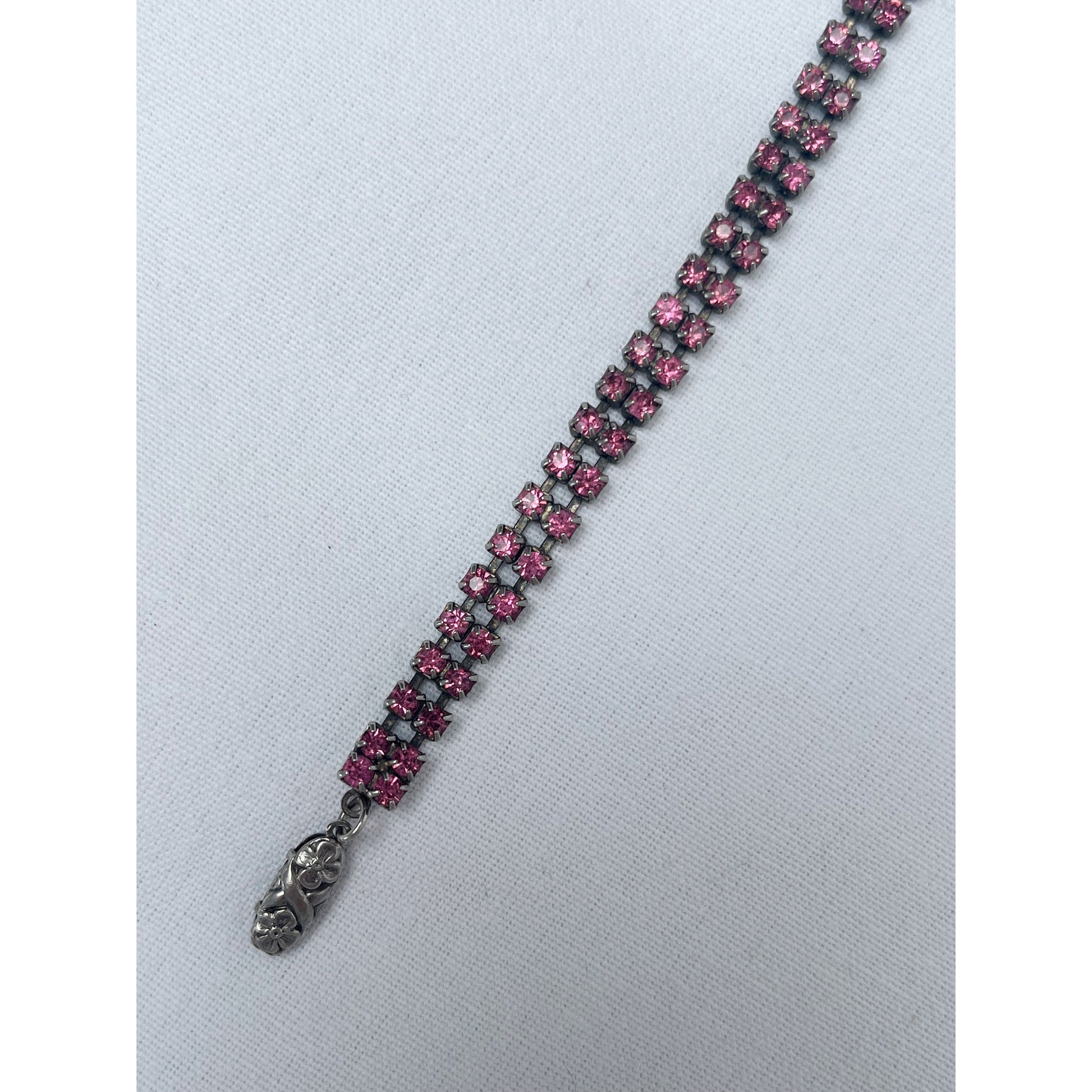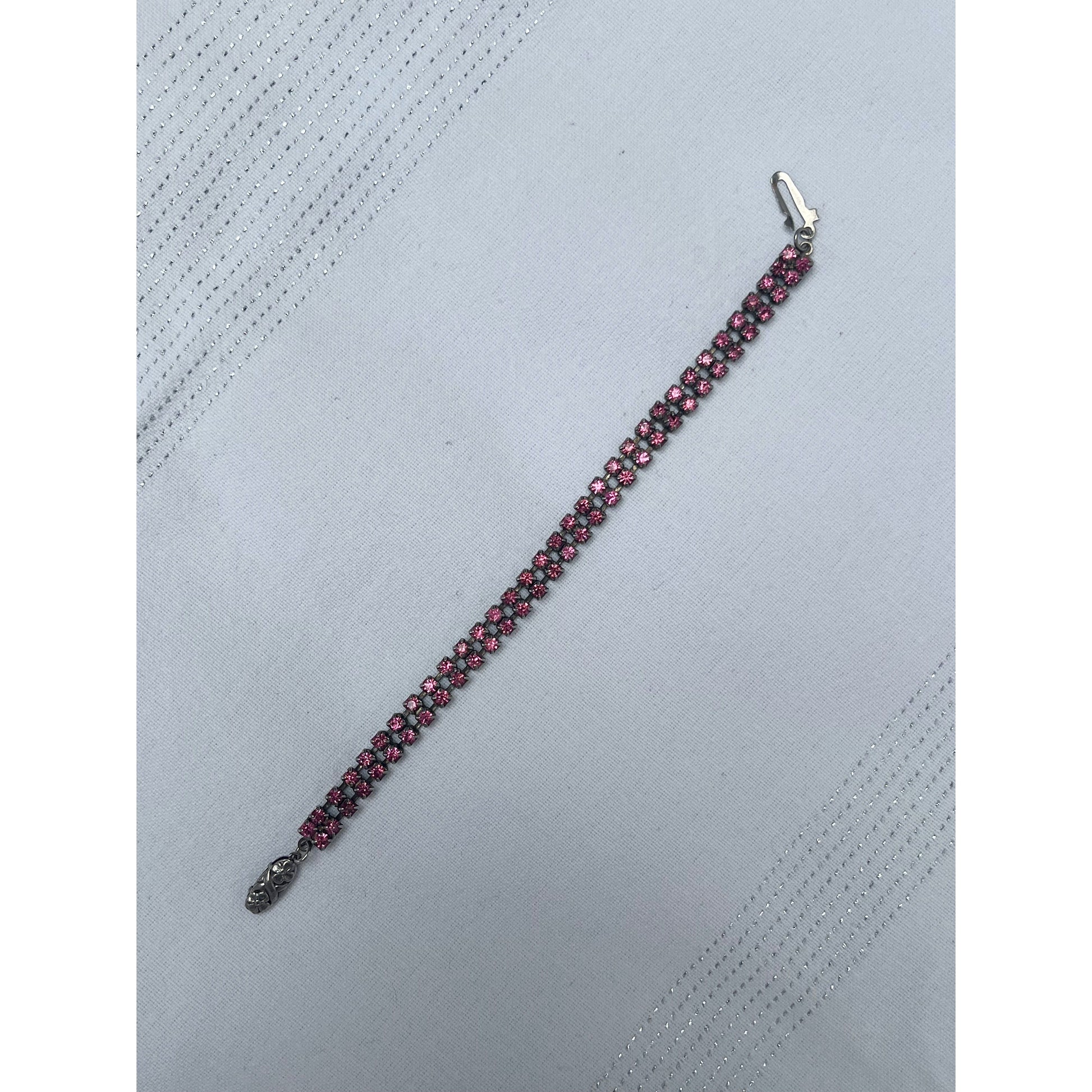 A beautiful and delicate vintage pink rhinestone bracelet.