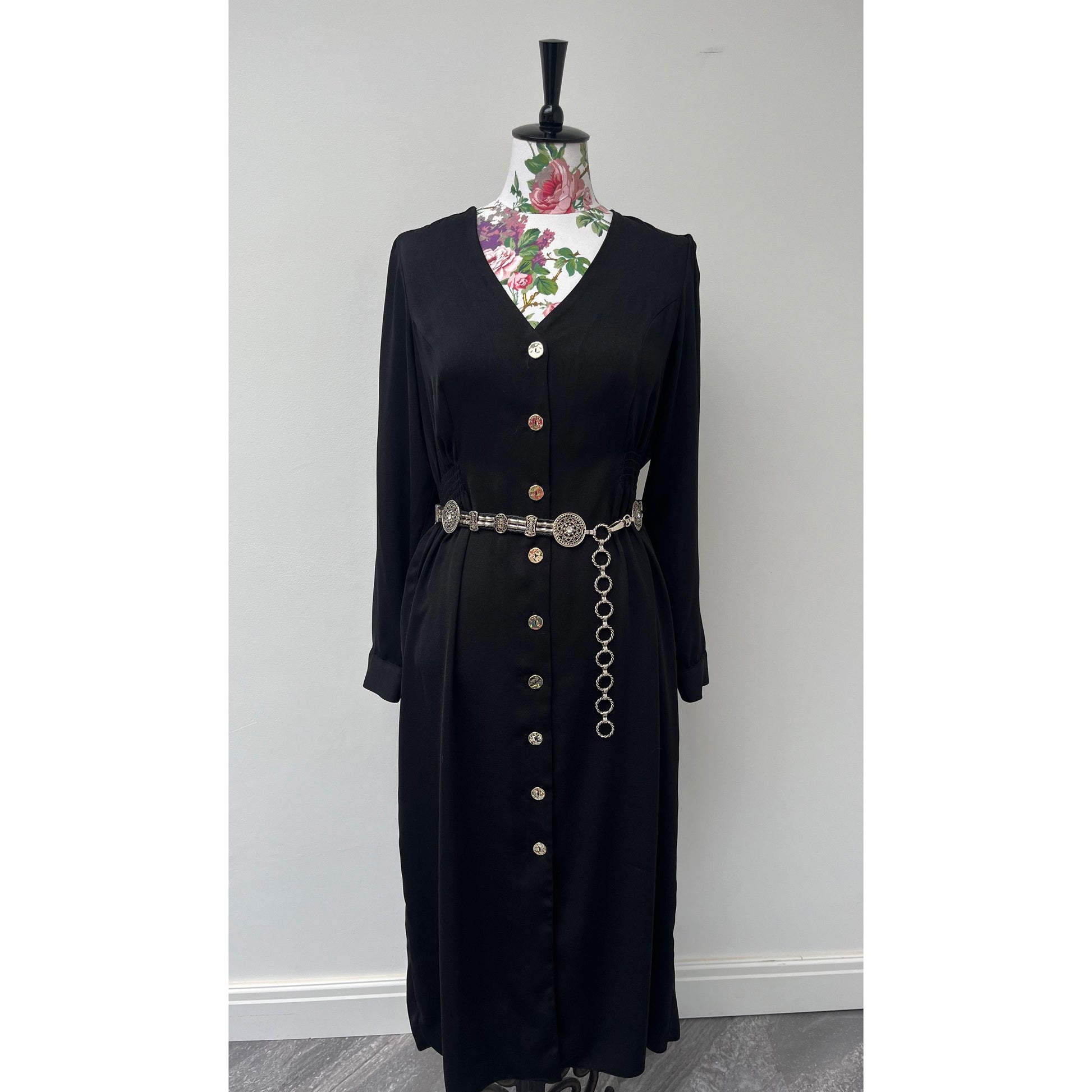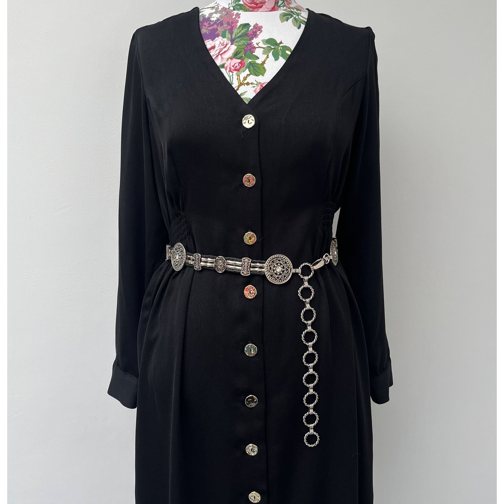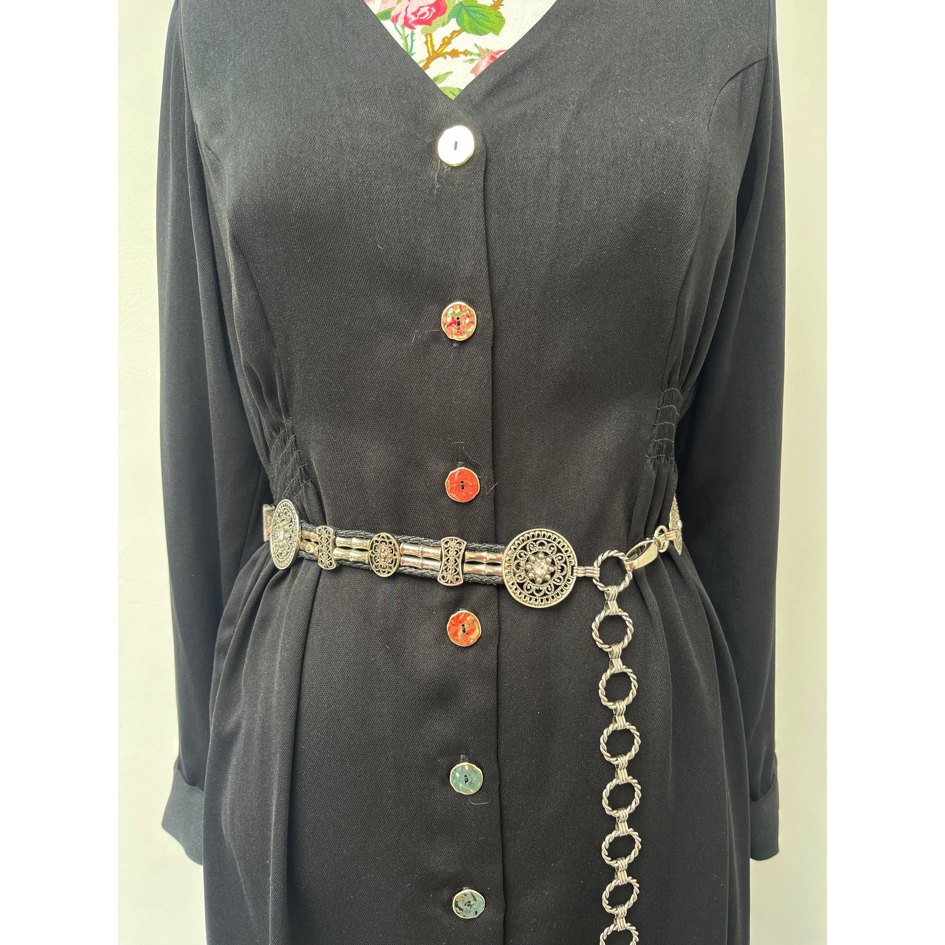 Main belt measures approx. 29 inches. Fasten-able Chain measures approx. 10.5 inches.