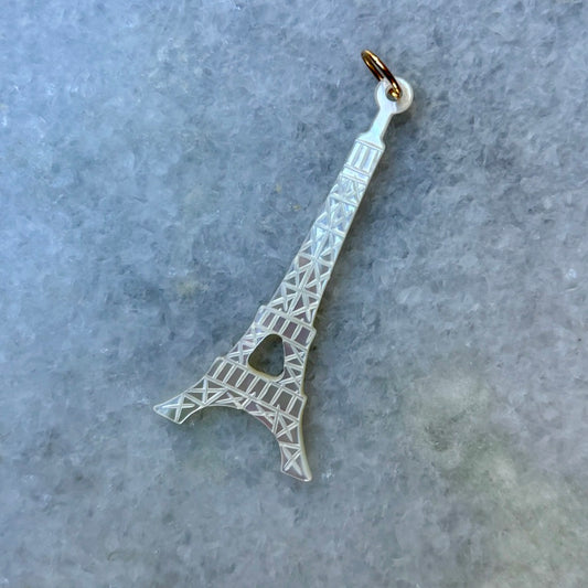 Mother of Pearl Carved Eiffel Tower Pendant Charm on 14k Gold Bale Loop